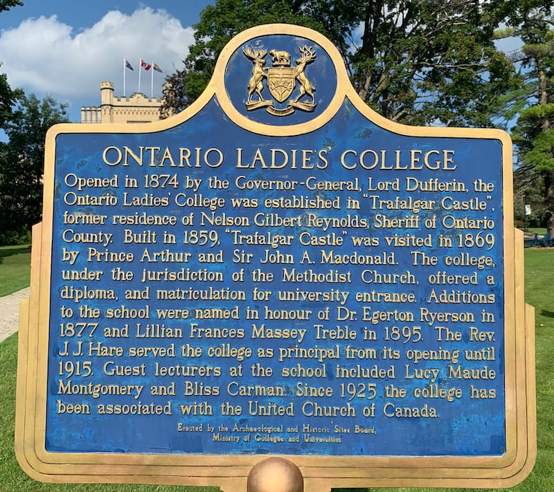 Trafalgar Castle is now run as a private girl's school. Here is the historic plaque at the entrance of the school.